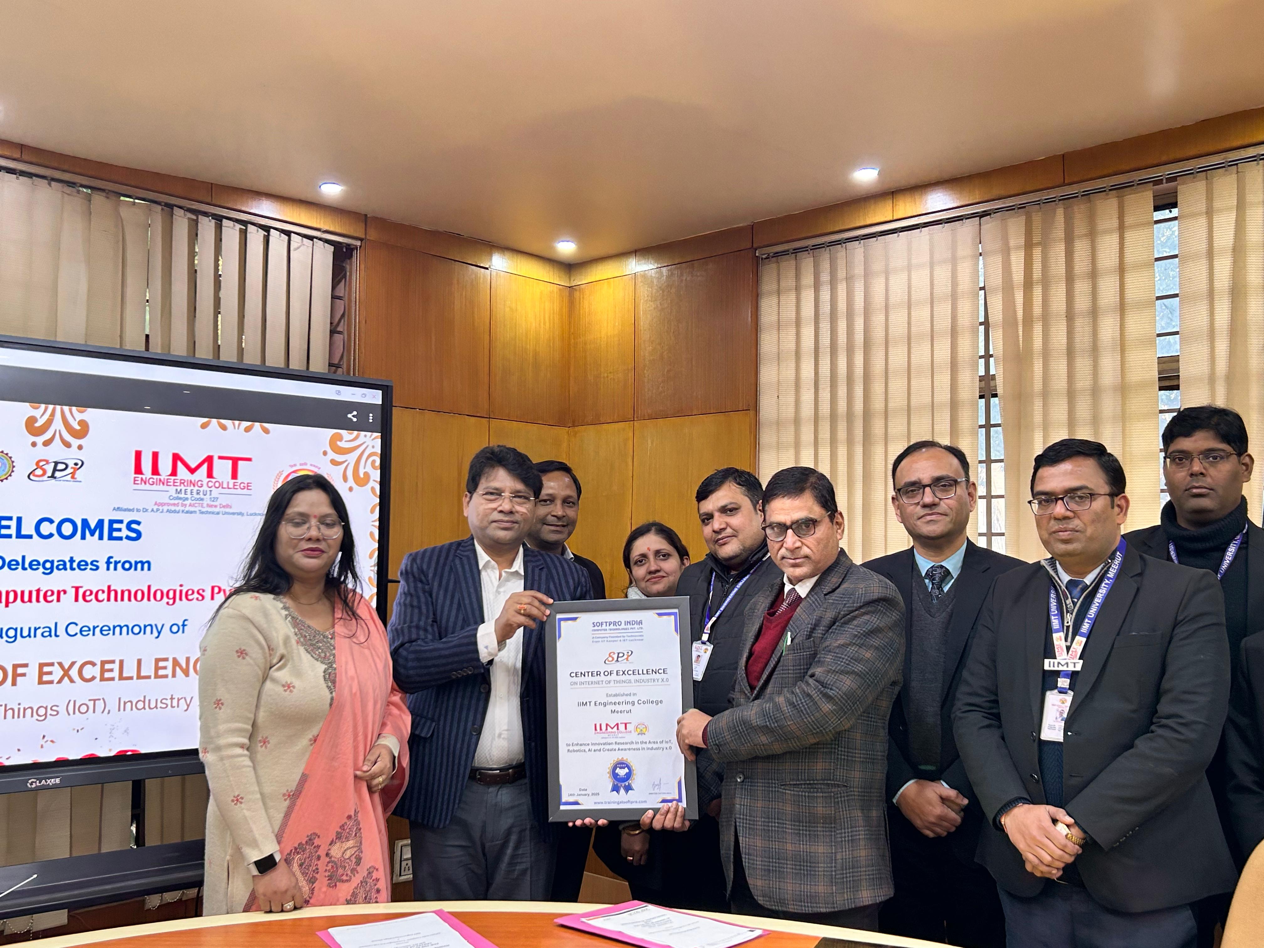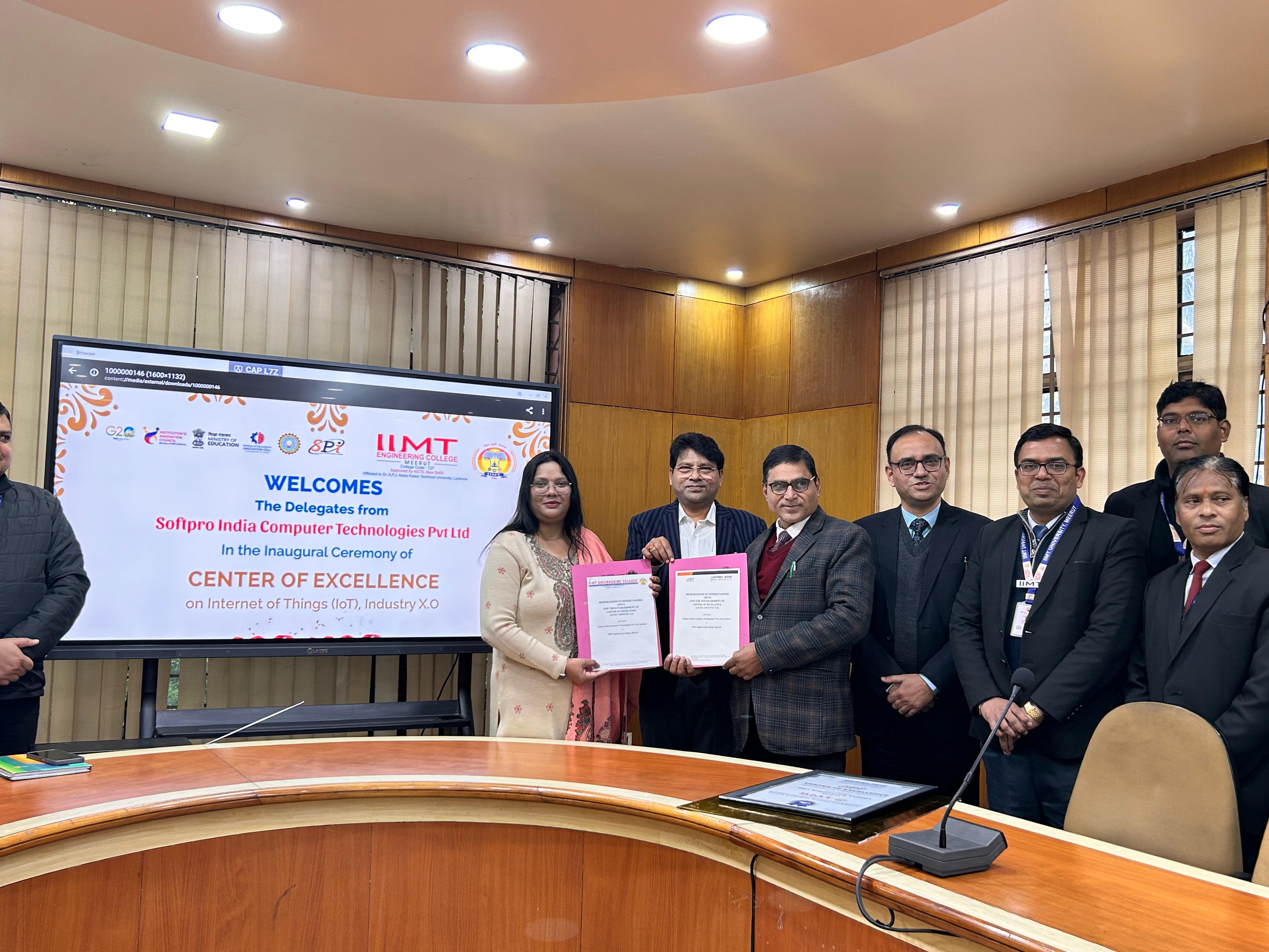 IIMT Engineering College, Meerut proudly has set many milestones to which latest is the establishment of the Center of Excellence on Internet of Things with Softpro India Computer Technologies Pvt. Ltd.